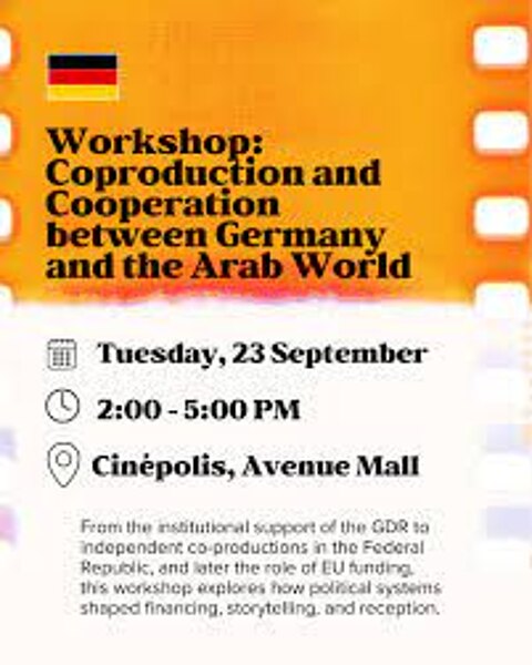 Focusing on the period from the post-war era until today, this workshop examines Arab-German cooperation in film within different political contexts—from the GDR’s institutional support to the Federal Republic’s co-productions with independent filmmakers, and later the evolving role of EU funding. Using examples from Palestinian cinema and beyond, Neidhardt will illustrate how political systems shaped film financing, storytelling, and audience reception. The session also looks at the role of the Arab diaspora in Germany and the continuing impact of these collaborations on contemporary Arab cinema. (In the framework of the European Film Festival Oman, organized by the Goethe Institute and the German Embassy.)